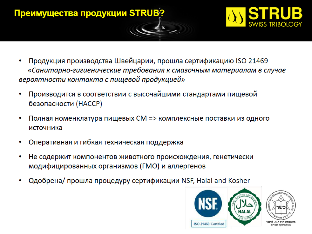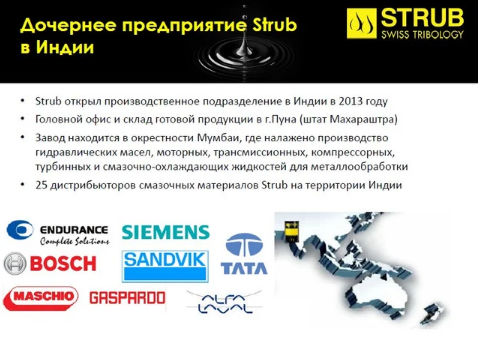 • Признание компании Strub + Co. AG, как поставщика смазочных материалов, адаптированных под специфические нужды потребителя